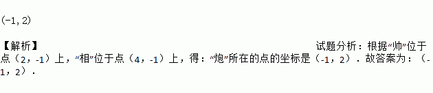 如图,是象棋盘的一部分,若“帅”位于点(2,﹣1)上,“相”位于点(4,﹣1)上,则“炮”所在的点的坐标是________.