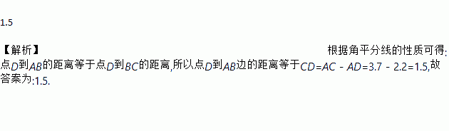 如图,在Rt△ABC中,∠C=90°,BD是三角形的角平分线,交AC于点D,AD=2.2cm,AC=3.7cm,则点D到AB边的距离是________ cm.