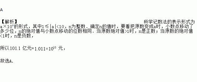 去年淳安县全县共接待国内外游客万人,实现旅游经济收入亿元,这是淳安县旅游经济收人首次突破百亿元大关,将亿元用科学记数法表示应是( )