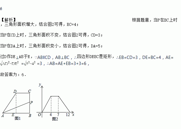 如图1,在四边形ABCD中,AB∥CD,AB⊥BC,动点P从点B出发,沿B→C→D→A的方向运动,到达点A停止,设点P运动的路程为x,△ABP的面积为y,如果y与x的函数图象如图2所示,那么AB边的长度为______.