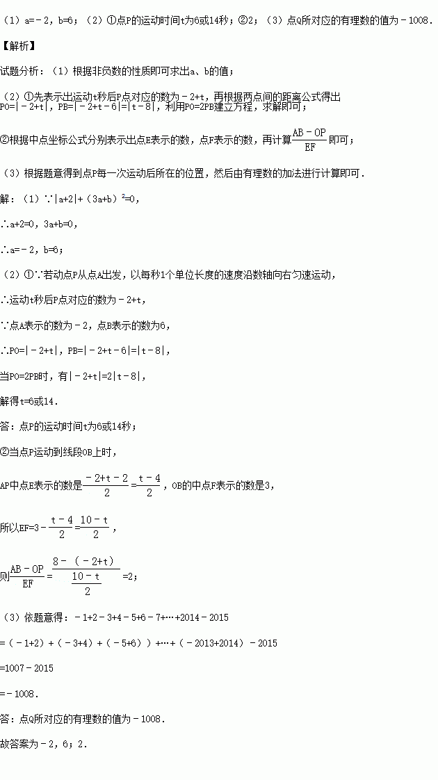(2015秋•相城区期末)如图,在数轴上点A表示的数为a,点B表示的数为b,且a,b满足|a+2|+(3a+b)2=0,O为原点.