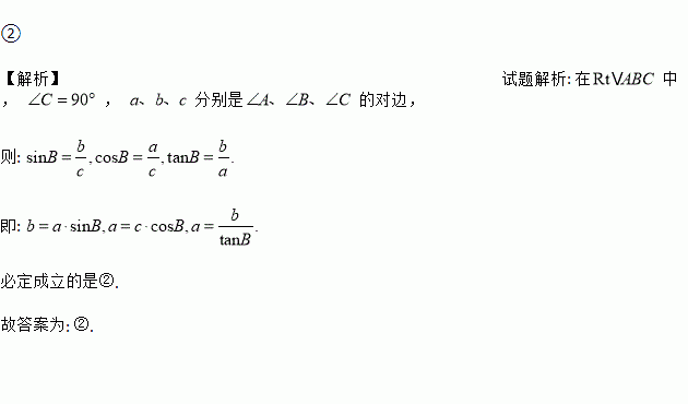 在Rt△ABC中,∠C=90°,a、b、c分别是∠A、∠B、∠C的对边,下列式子:①a=c•sinB,②a=c•cosB,③a=c•tanB,④a=,必定成立的是________.
