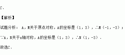 如图,阴影部分组成的图案既是关于x轴成轴对称的图形又是关于坐标原点O成中心对称的图形.若点A的坐标是(1,3),则点M和点N的坐标分别是( )