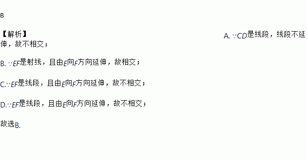 下列各图中所给的线段、射线、直线能相交的是( )