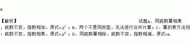 A. a2•a3=a5 B. a2+a3=a5 C. (a3)2=a5 D. a3÷a2=1