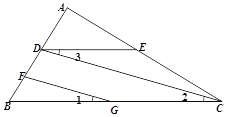如图,FG//CD,∠1=∠3,∠B=50°,求∠BDE的度数.