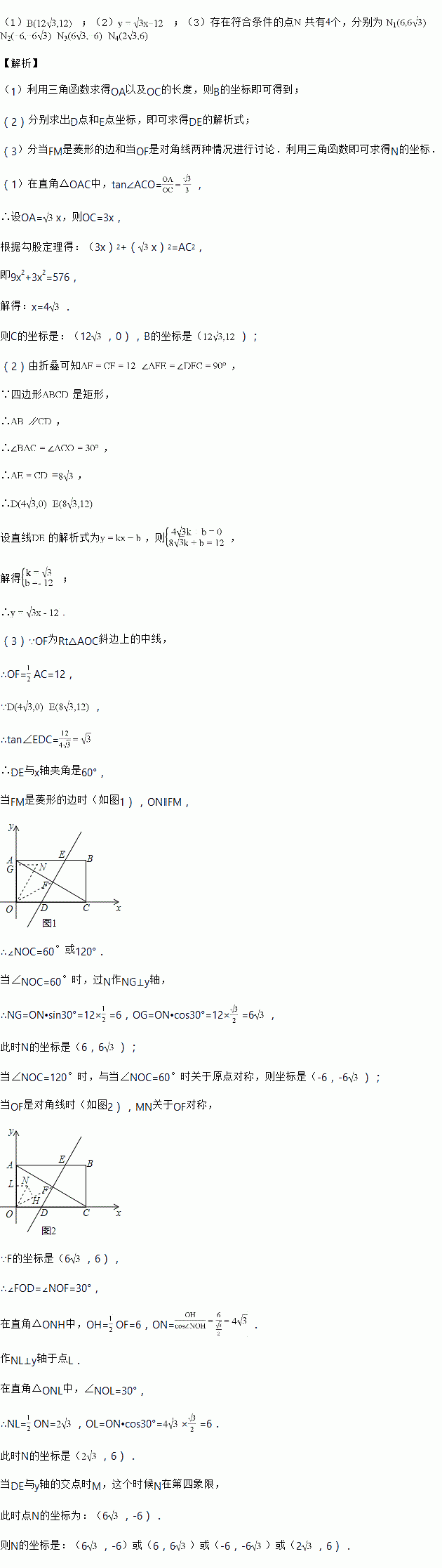 (2)把矩形沿直线![]()