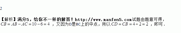 如图,点C是线段AB上的点,点D是线段BC的中点,若AB=10,AC=6,则CD=______;