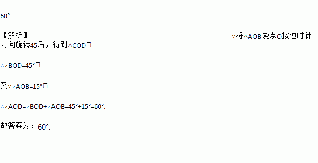 如图,将△AOB绕点O按逆时针方向旋转45°后,得到△COD,如果∠AOB=15°,则∠AOD的度数是________.