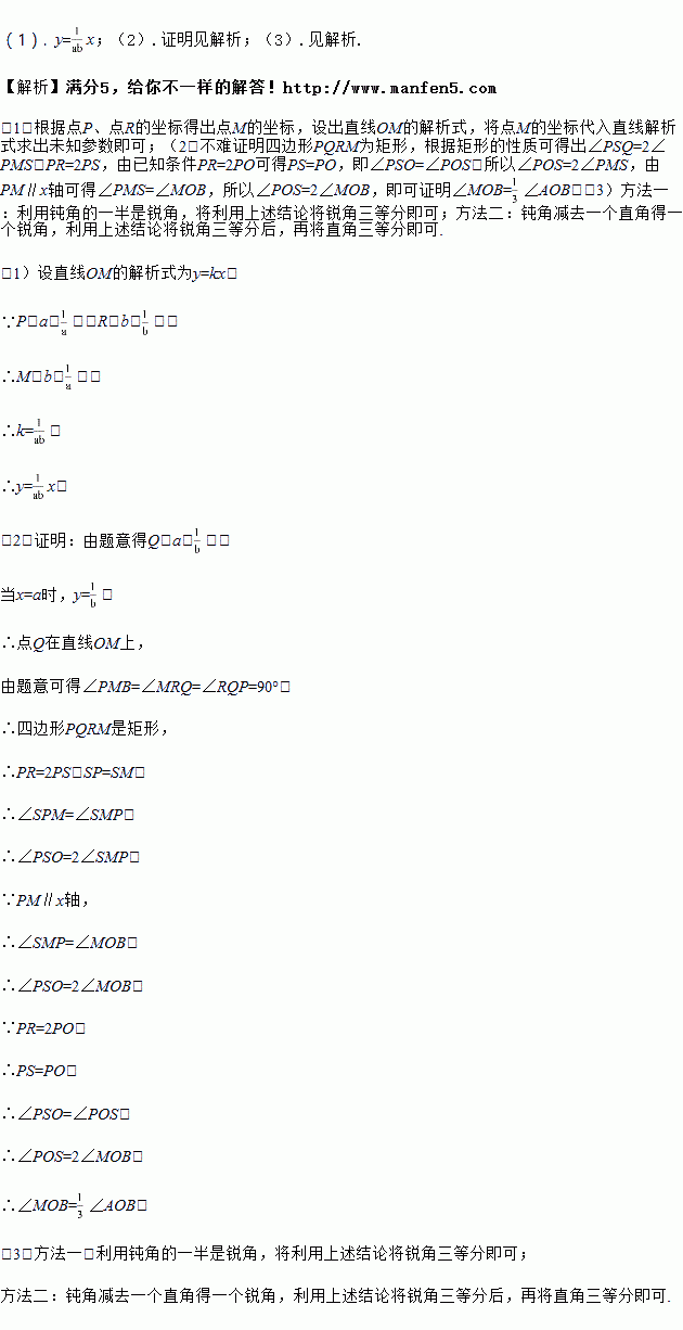 (2)分别过点P和R作y轴和x轴的平行线,两直线相交于点Q.请说明Q点在直线OM上,并据此证明∠MOB=