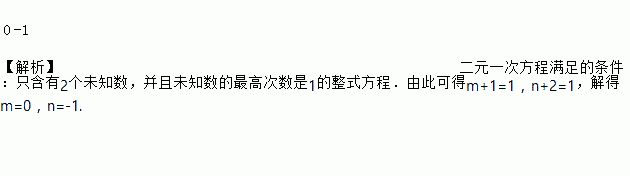 方程3xm+1-2yn+2=4是二元一次方程,则m=____,n=____.
