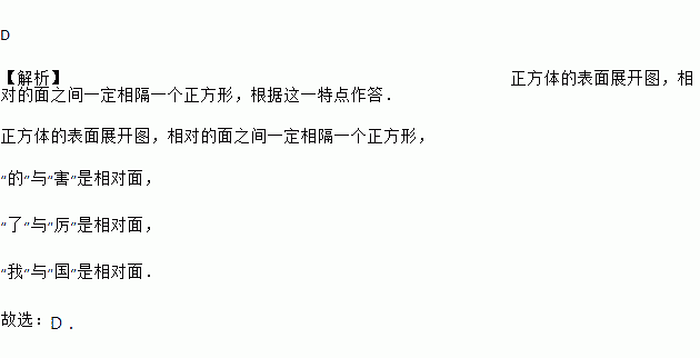 某正方体的每个面上都有一个汉字,如图是它的一种展开图,那么在原正方体中,与“国”字所在面相对的面上的汉字是( )