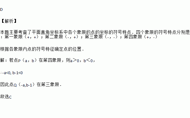若点P(a,b)在第三象限,则点Q(-a,b-1)在( )