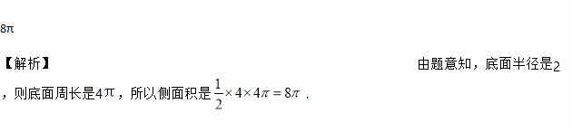 已知圆锥的母线与高的夹角为30°,母线长为4 cm,则它的侧面积为_________ cm2(结果保留π).