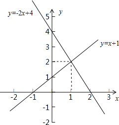解:画y1=x+1和y2=-2x+4图象:根据图象,