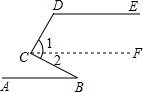 7.分析 过点C作CF∥AB,然后根据两直线平行,内错角相等表示出∠2,两直线平行,同旁内角互补表示出∠1,再整理即可得解.