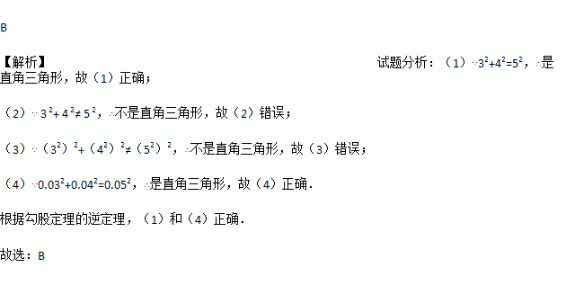 以下列各组数为边的三角形中,是直角三角形的有( )(1)3,4,5;(2), , ;(3)32,42,52;(4)0.03,0.04,0.05.