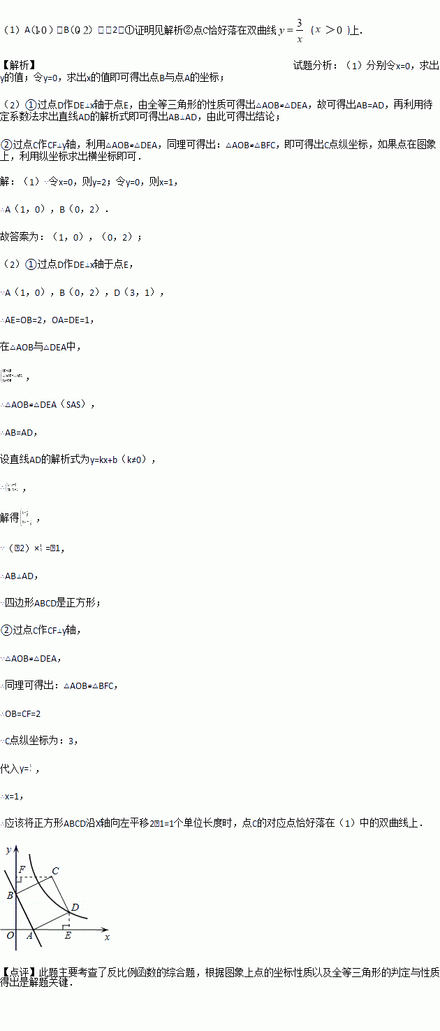 (2)以线段AB为一边在第一象限内作□ABCD,其顶点D(