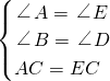 ∴∠A=∠E,∠B=∠D,