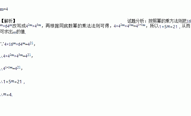 已知4×16m×64m=421,求m的值.