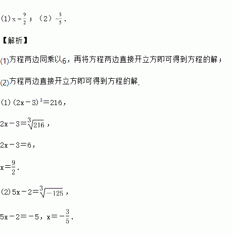 (2x-3)3=36; (2)(5x-2)3=-125.