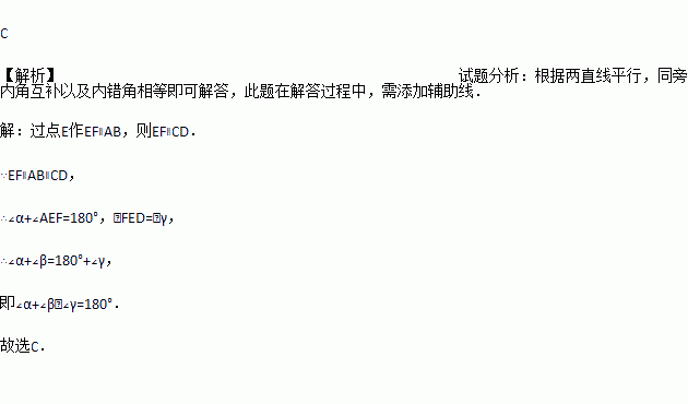 已知,如图,AB∥CD,则∠α、∠β、∠γ之间的关系为( )