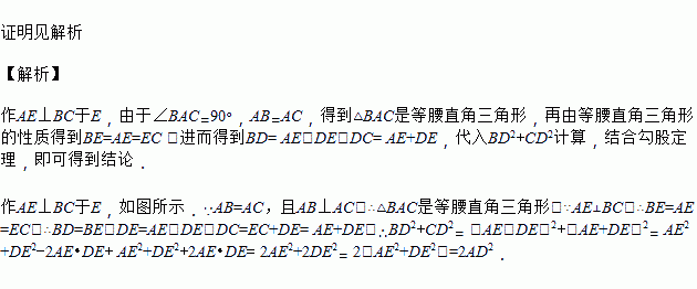 已知:AB=AC,且AB⊥AC,D在BC上,求证:。