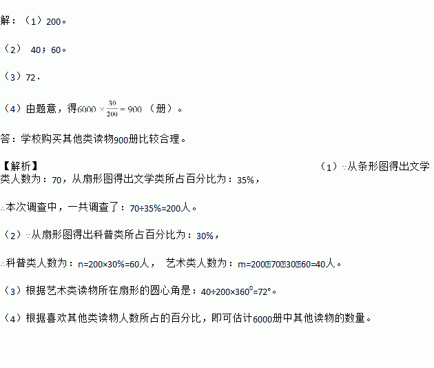 (3)扇形统计图中,艺术类读物所在扇形的圆心角是 度;