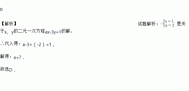 若是关于x,y的二元一次方程ax―3y=1的解,则a的值为( )