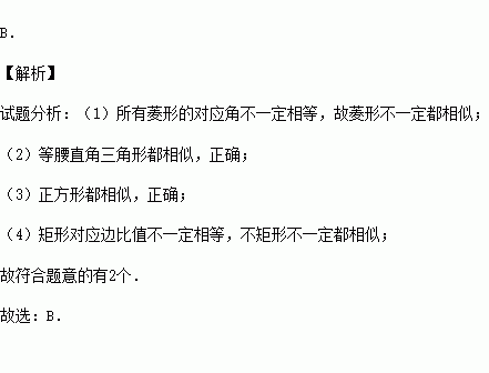 (1)菱形都相似;(2)等腰直角三角形都相似;(3)正方形都相似;(4)矩形都相似.