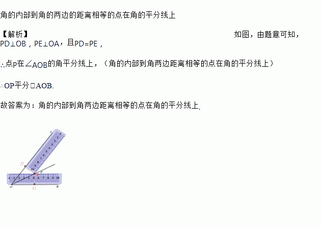 小明同学在学习了全等三角形的相关知识后发现,只用两把完全相同的长方形直尺就可以作出一个角的平分线.如图:一把直尺压住射线OB,另一把直尺压住射线OA并且与第一把直尺交于点P,小明说:“射线OP就是∠BOA的角平分线.”他这样做的依据是_____________.