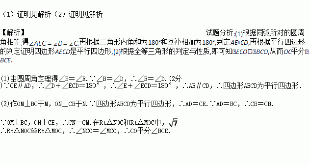 (1)求证:四边形AECD为平行四边形;
