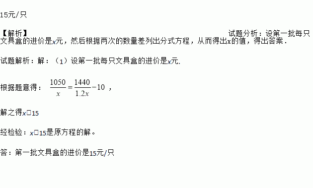 某商店用1050元购进第一批某种文具盒,很快卖完.又用1440元购进第二批该种文具盒,但第二批每只文具盒的进价是第一批进价的1.2倍,数量比第一批多了10只.求第一批每只文具盒的进价是多少元?