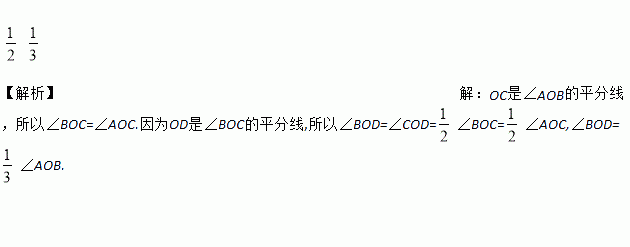 如图,OC是∠AOB的平分线,OD是∠BOC的平分线,则∠COD=______∠AOC, ∠BOD=______∠AOD.
