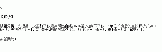 将直线y=x+b沿y轴向下平移3个单位长度,点A(-1,2)关于轴的对称点落在平移后的直线上,则的值为__________.