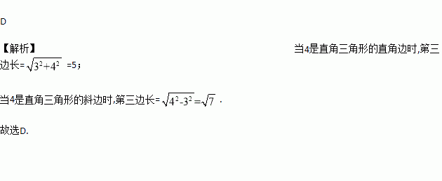 已知一个Rt△的两边长分别为3和4,则第三边长的是( )