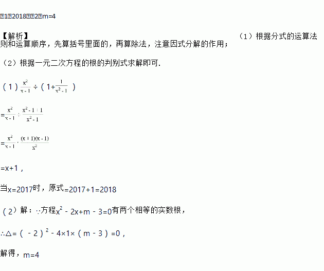 (2)已知方程x2﹣2x+m﹣3=0有两个相等的实数根,求m的值.