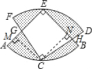 分析:根据扇形的面积公式求出面积,再过点C作CM⊥AE,作CN⊥BE,垂足分别为M、N,然后证明△CMG与△CNH全等,从而得到中间空白区域的面积等于以2为对角线的正方形的面积,从而得出阴影部分的面积.