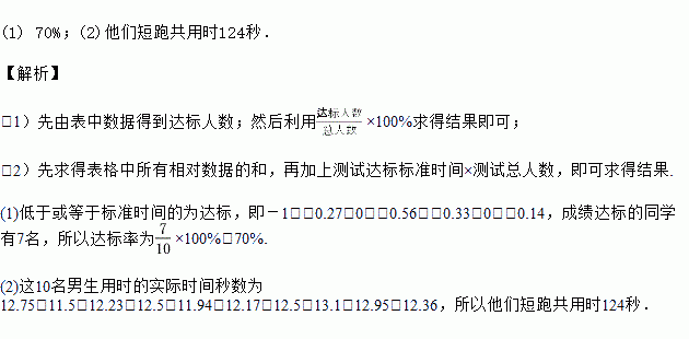 (2)这10名男生短跑共用时多少秒?