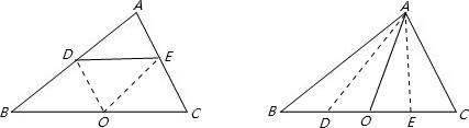 (2)第一种方案:由三角形的一条中位线DE把三角形的面积分成1:3的两部分,取BC中点O,连接OD,OE;