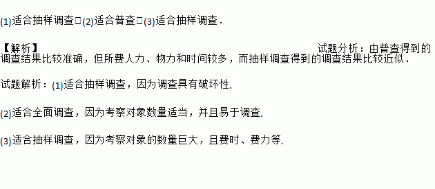 下列调查中,哪些适合抽样调查?哪些适合全面调查?