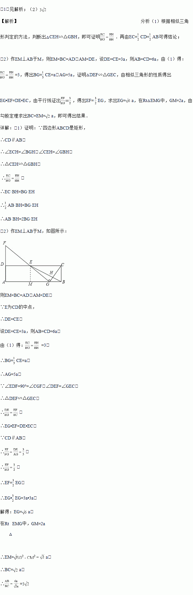 在矩形ABCD中,E为CD的中点,H为BE上的一点,,连接CH并延长交AB于点G,连接GE并延长交AD的延长线于点F.