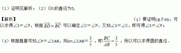 (2)若BC=3,sin∠BPD=,求⊙O的直径.
