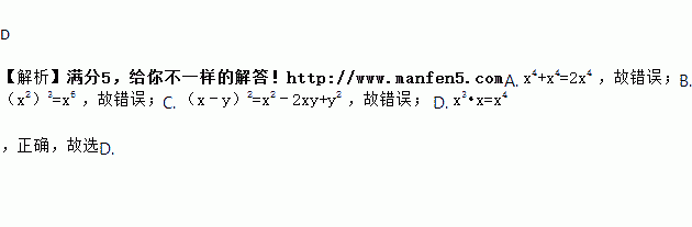 A. x4+x4=2x8 B. (x2)3=x5 C. (x﹣y)2=x2﹣y2 D. x3•x=x4