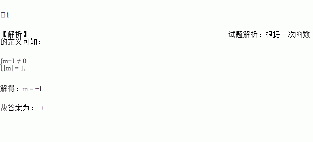 若关于x的函数y=(m-1)x|m|+9是一次函数,则m的值为________.