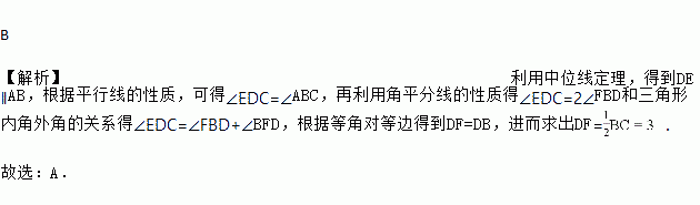 如图,△ABC中,D、E分别是BC、AC的中点,BF平分∠ABC,交DE于点F,若BC=6,则DF的长是( )