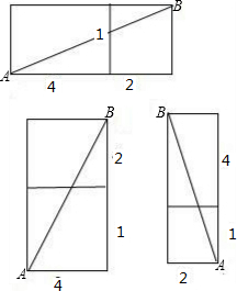 路径三:AB=$\sqrt{{2}^{2}+{5}^{2}}=\sqrt{29}$;