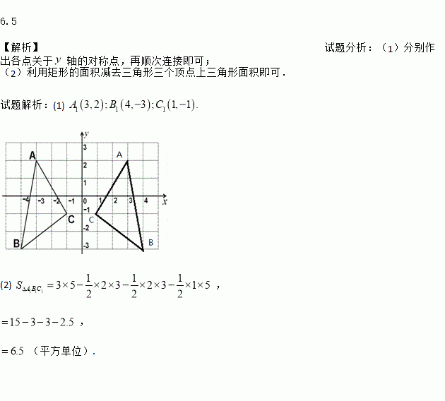 如图,(1)画出?ABC关于y轴对称的?A1B1C1,并写出?A1B1C1的各顶点坐标;