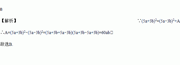 设(5a+3b)2=(5a﹣3b)2+A,则A=( )