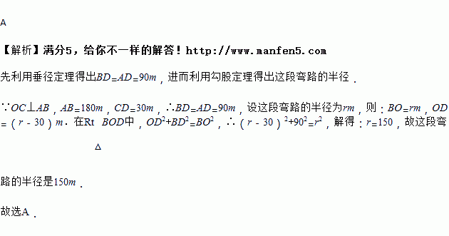 如图,一条公路的转弯处是一段圆弧(图中的弧AB,点是这段弧的圆心,是上一点,,垂足为,,,则这段弯路的半径为( )